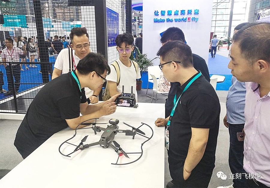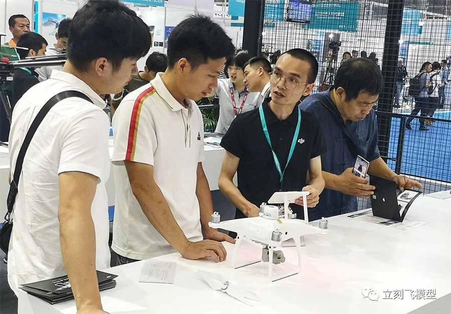 工作人员一边现场演示操作,一边回答观众的问题,并讲解操作方式以及无人机的性能特点。